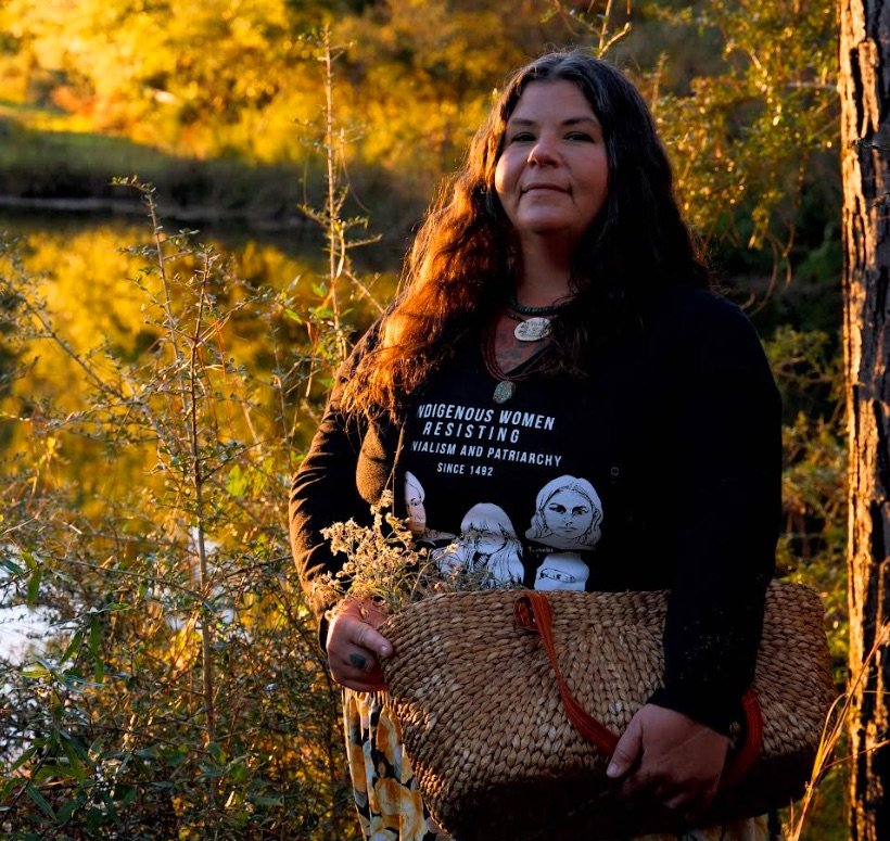Angie Comeaux is of Mvskoke, Cherokee, Chahta, and French Creole descent, and belongs to Kvnfvske etvlwv, where she is Nokosvlke clan mother. Angie was born and raised in Bvlbancha, currently living and farming in south Alabama, in her ancestral Mvskoke homelands. She is a founding member of both Bvlbancha Collective and Okla Hina Ikhish Holo, two Indigenous Southeastern femme and non-binary collectives working in mutual aid, medicine, and food sovereignty, and rebuilding ancestral trade routes. Angie is a seed grower, was a student in the inaugural cohort of the Ira Wallace Seed School, and a part of the Gulf South Heritage Seed Project. In 2023, Angie completed Clinical Herbal Practitioner school with the Appalachian Center for Natural Health and 4th year of herbal medicine courses. Angie was recently awarded the 2024 Environmental Leader Award by the Center for Rural Affairs. Additionally, Angie was a 2022-2023 fellow with the Soul Fire Farm Braiding Seeds fellowship, and as of July 2025, became a Co-Director of the Fellowship.