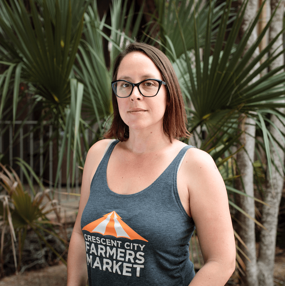Angelina Harrison is originally from a small family dairy farm in Wisconsin. She grew up helping her mom can and preserve from the bounty of a kitchen garden and none of her food came out of a box. After graduating with honors from UC Berkeley with a B.S. in environmental science and policy, she worked in local government in the Bay Area on various climate action plan implementation projects. She’s been in New Orleans since 2011, where a search for a local CSA brought her into food systems work, where she has found her calling, helping to make sustainable food choices easy for consumers to make. Angelina has worked to support small-scale, sustainable agriculture, and the producers that comprise it in various facets, and continues to do so as the new Interim Executive Director of Market Umbrella, leading an organization that supports thriving farmers markets, numerous local and statewide nutrition incentive programs, and vendor and food systems support work. She has endless respect for the folks who can coax tomatoes out of this SE LA climate, and works to pull back the veil on the hidden humanitarian, environmental, economic and health costs of conventional food production and delivery, and illuminate the incredible, impossible and essential work that small growers are doing for our state, region, economy, climate and food system. She lives with her husband and their brood of chicks, enjoys eating food that other people make, cooking with produce their family grows, and is driven by a tenacious (some say stubborn) optimism for what is possible.